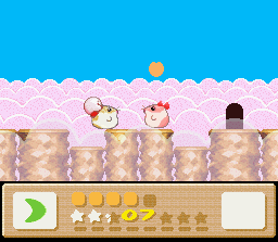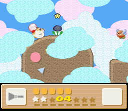 This one is a royal pain in the keester! Grab a Broom powerup from an enemy early in the level and take Rick (the hamster) when you come to him. Keep both and proceed through the level until you reach an area that has a bunch of flowers growing on hilltops. These flowers are covered in dirt. When you use the broom power with Rick, it turns into a feather-duster. Dust each flower only ONCE so that the dirt disappears. (DO NOT dust more than once or hold the button down, because you'll flatten the flower and fail the mission if you do!) Now here comes the really hard part - you'll have to jump OVER the flower when you're done dusting, and make sure you completely clear it so that you don't land on it. Flattening just one flower will cause you to fail the mission! This can be difficult to do because you not only have to worry about the flower, but you also have to be careful not to fall into a pit, and the clouds in the foreground make it difficult to see. Remember that Rick can wall-jump up sheer surfaces if you don't quite make a jump. You'll hear a tone when you've dusted the last flower, and one of them will give you the Star at the end of the level.