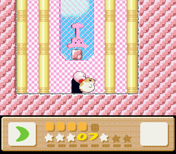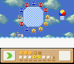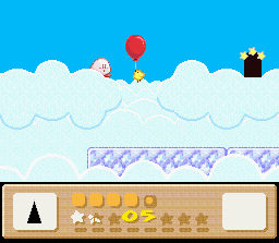 About 3/4 of the way through the level, grab one of the enemies that looks like a Spiny from Super Mario Bros. to get its Spike power (left screenshot). Proceed to the end of the level and right before the exit door you'll find a baby chicken suspended from a balloon (right screenshot).