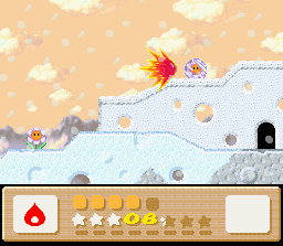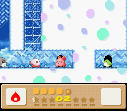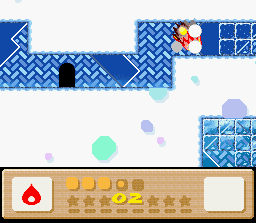 Grab one of these snowmen enemies from the start of the level to gain the Ice power (left screenshot). Do it quickly because an avalanche is right on your tail. When you reach the indoor lava cave area, look for three rooms with Metroids in them (as in the jellyfish creatures from Nintendo's famous space adventure game series).