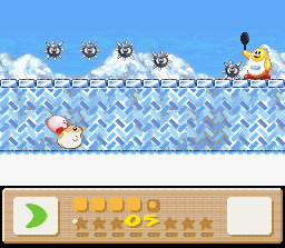 We have yet another flower-related puzzle. Halfway through the stage, you'll find a bunch of flowers encased in ice blocks. Grab a Fire powerup (there are plenty to be had in this stage) and use it to thaw them out. You'll hear a tone when you've gotten the last one. Proceed to the end of the level and a large flower will give you the Star.