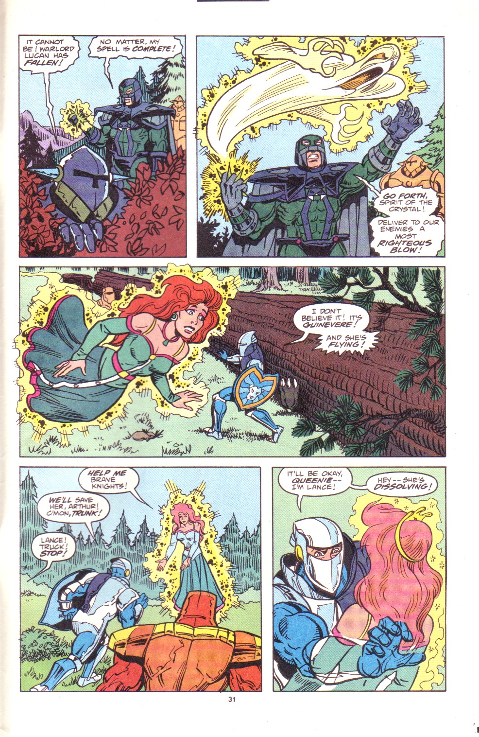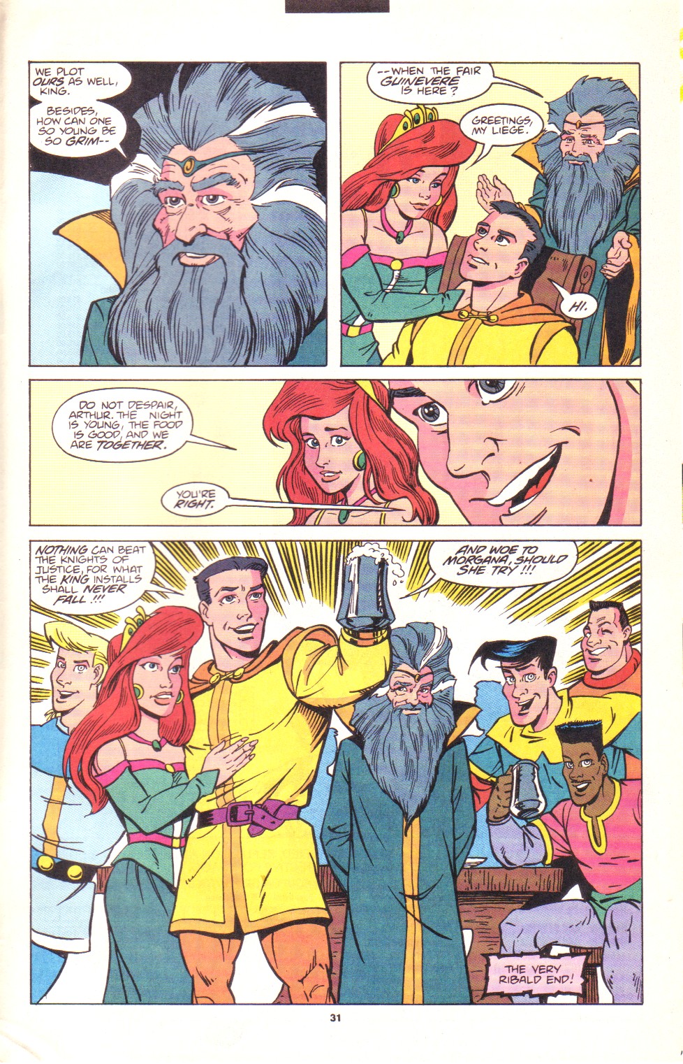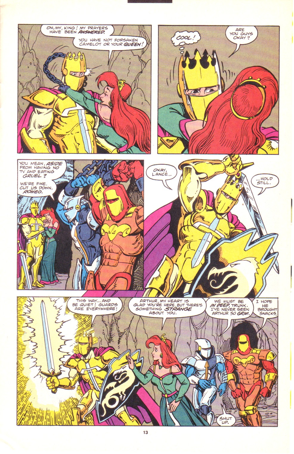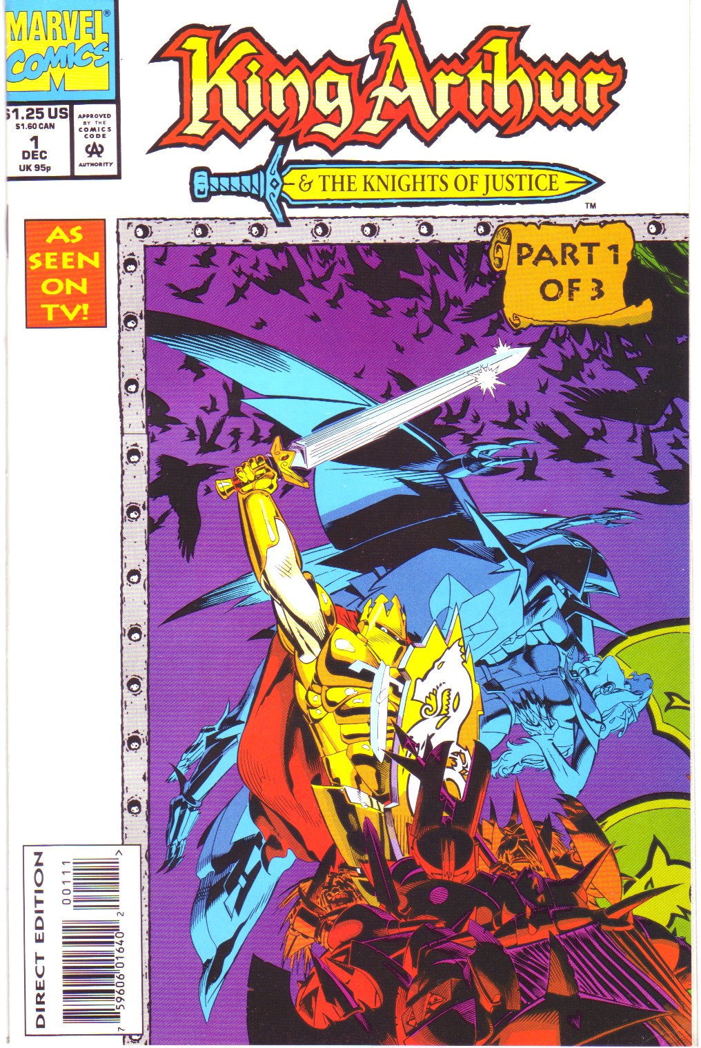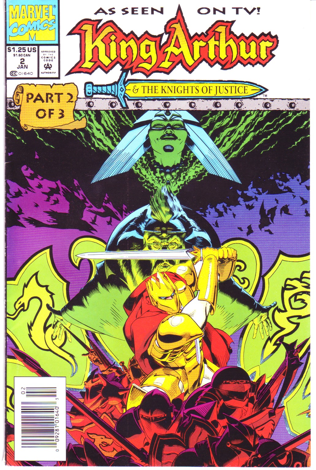 Scans of the complete 3-part Marvel comics series based on the King Arthur & the Knights of Justice cartoon. Basically tells the story of how the football team were transported back in time and became the Knights of Justice and chronicles their first adventure to rescue Queen Guinevere. The reason some page numbers are missing is because I didn't bother to scan any of the ads. None of them were related to Knights of Justice in any way and were generally uninteresting anyway.