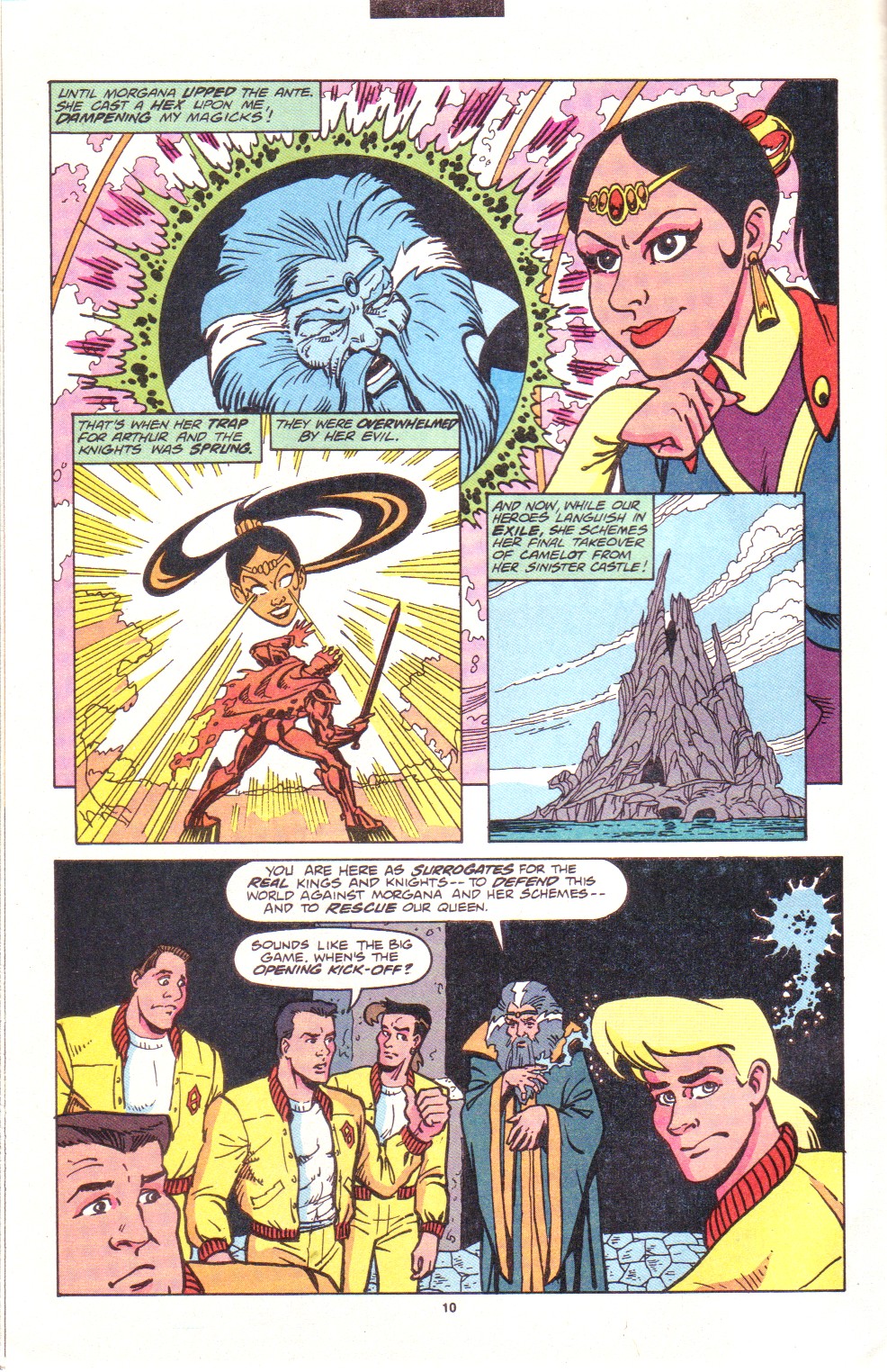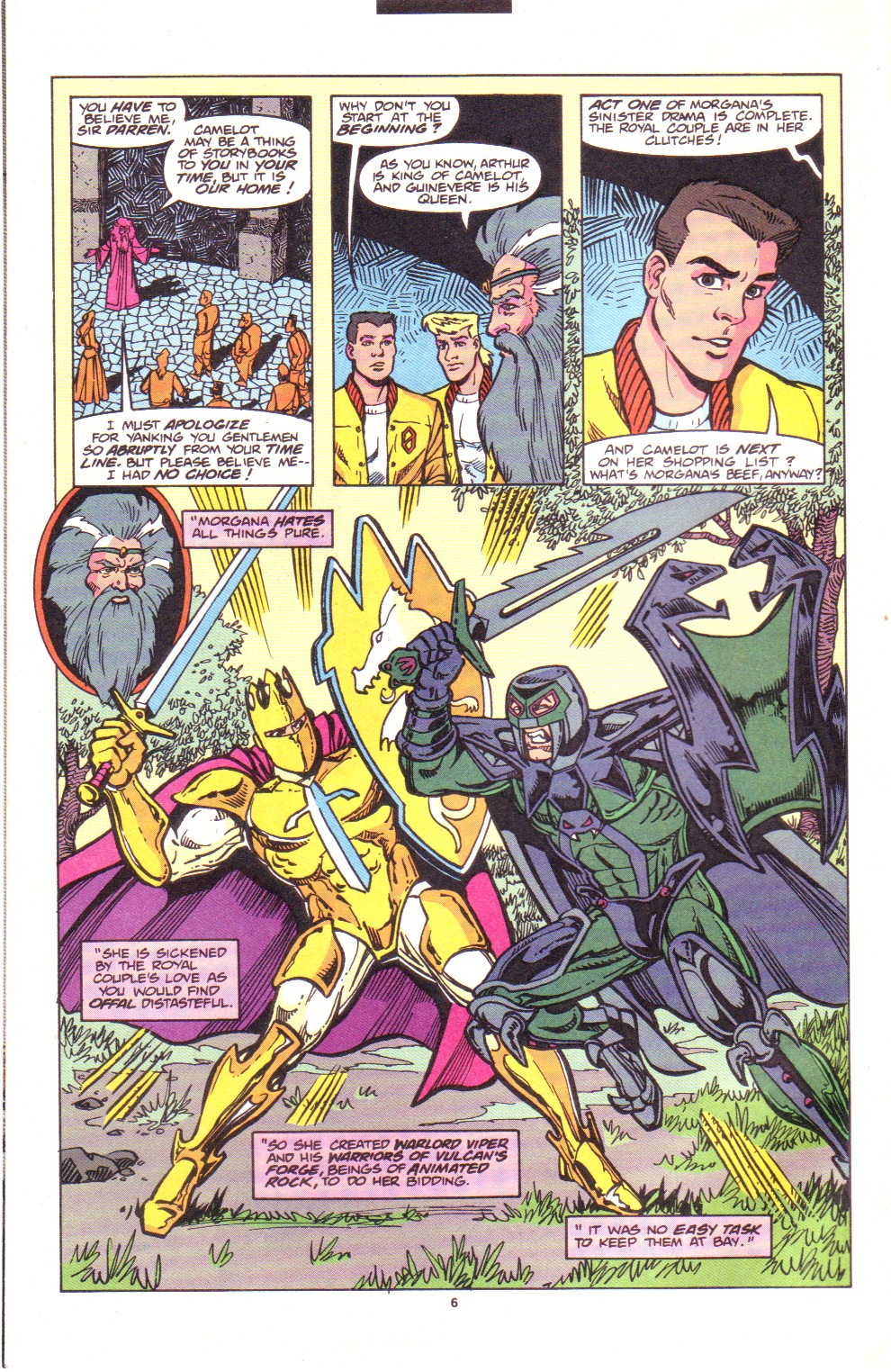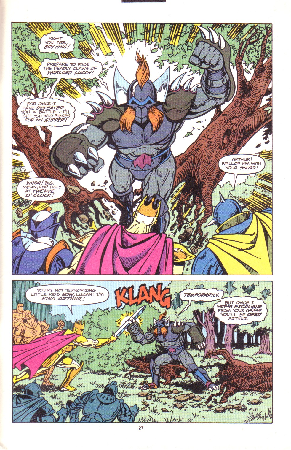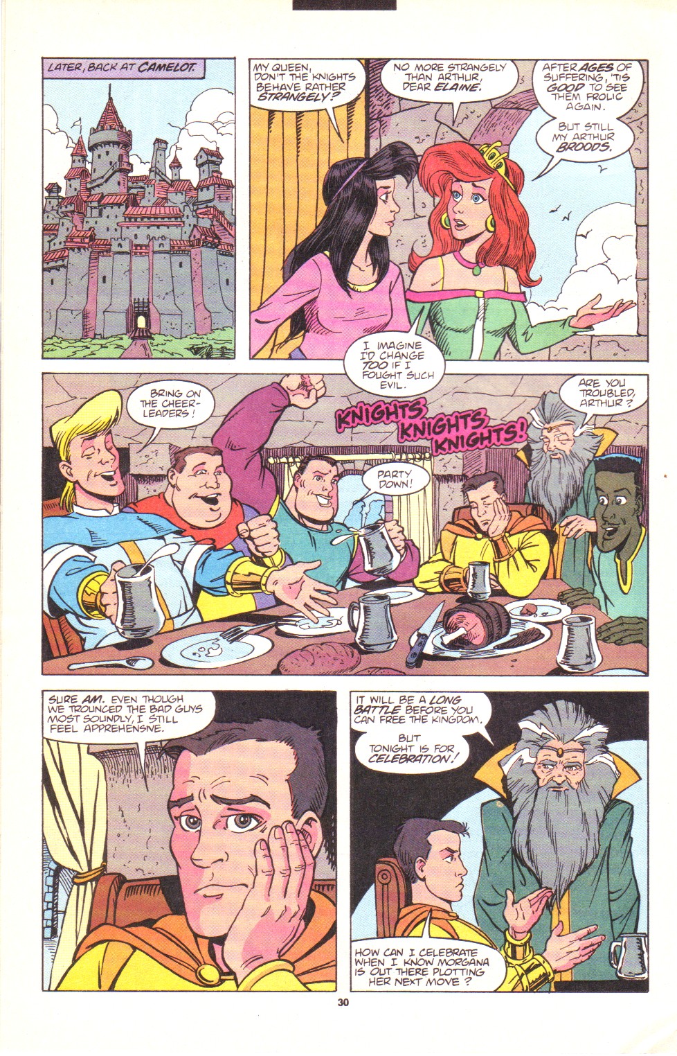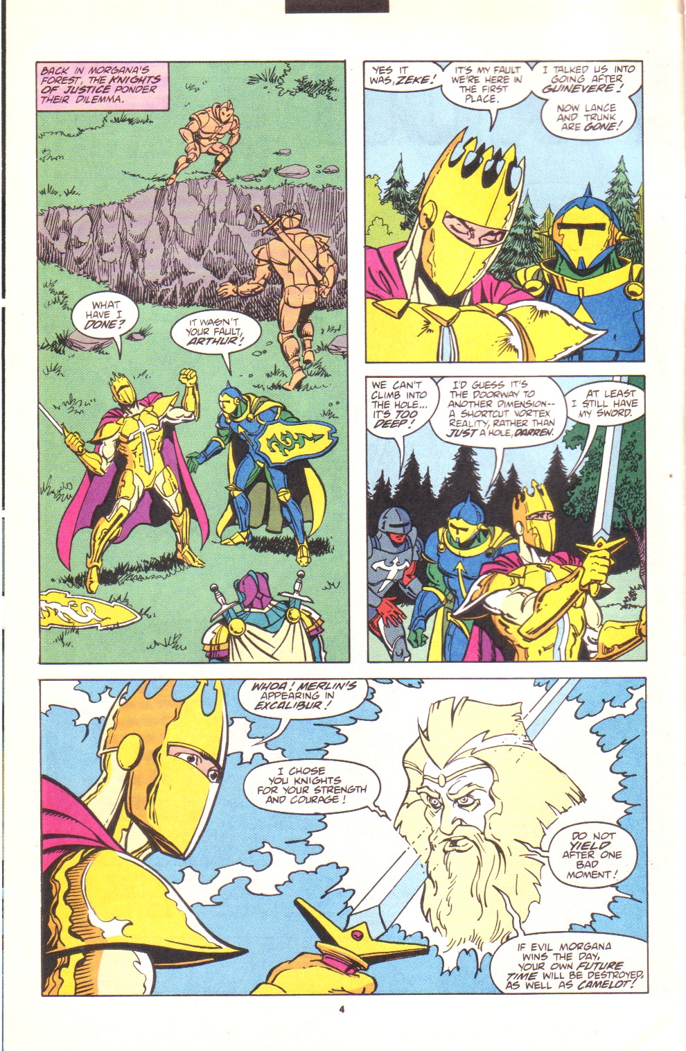 Scans of the complete 3-part Marvel comics series based on the King Arthur & the Knights of Justice cartoon. Basically tells the story of how the football team were transported back in time and became the Knights of Justice and chronicles their first adventure to rescue Queen Guinevere. The reason some page numbers are missing is because I didn't bother to scan any of the ads. None of them were related to Knights of Justice in any way and were generally uninteresting anyway.