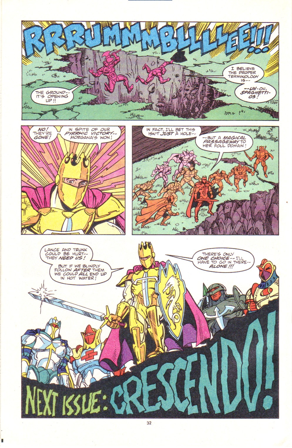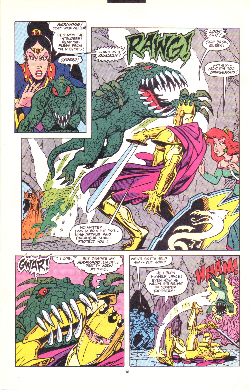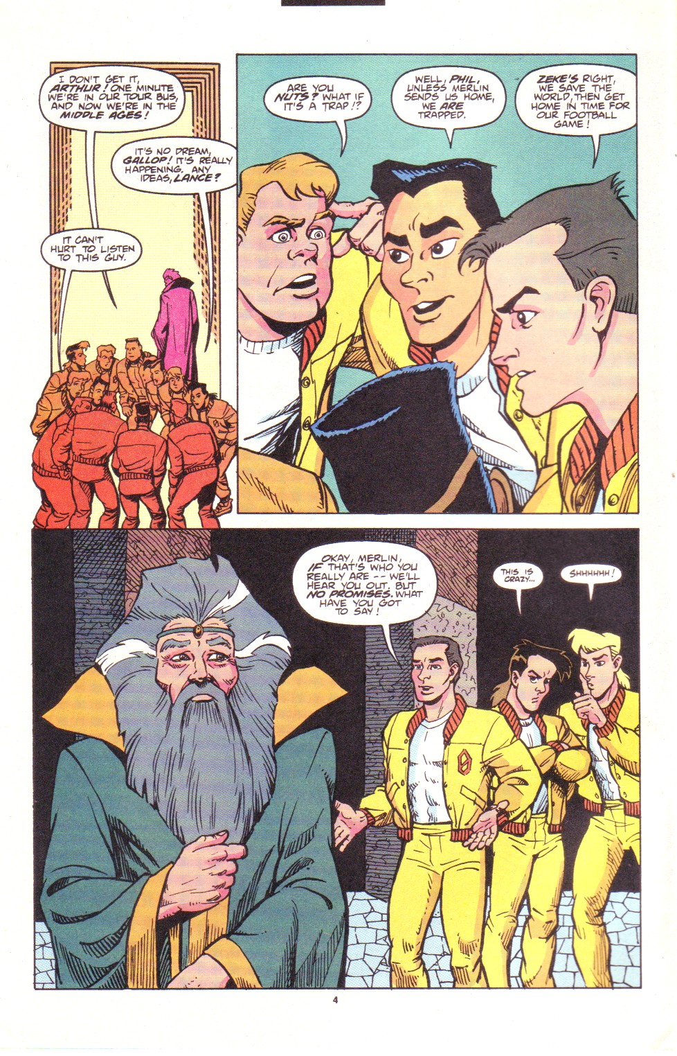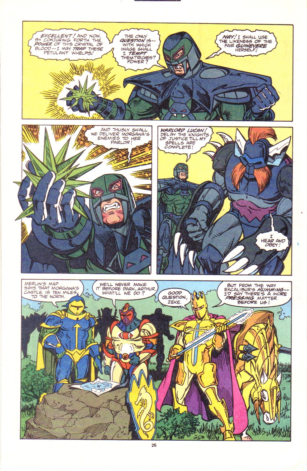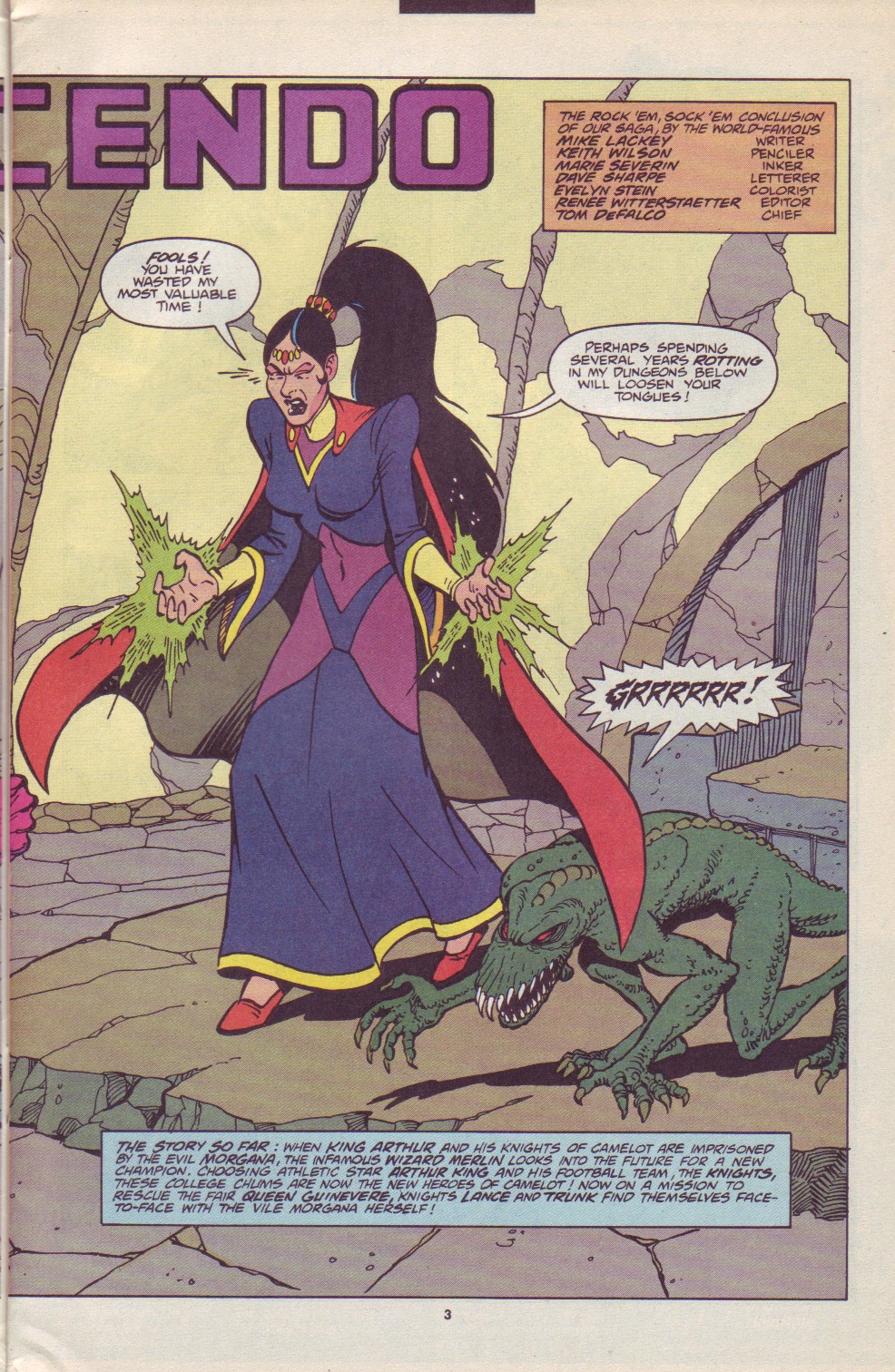 Scans of the complete 3-part Marvel comics series based on the King Arthur & the Knights of Justice cartoon. Basically tells the story of how the football team were transported back in time and became the Knights of Justice and chronicles their first adventure to rescue Queen Guinevere. The reason some page numbers are missing is because I didn't bother to scan any of the ads. None of them were related to Knights of Justice in any way and were generally uninteresting anyway.