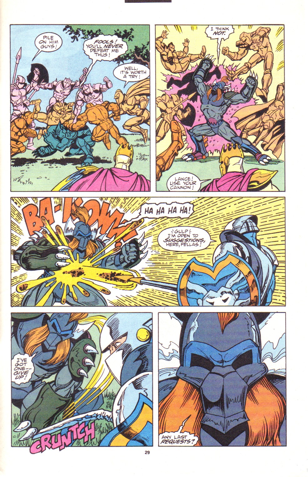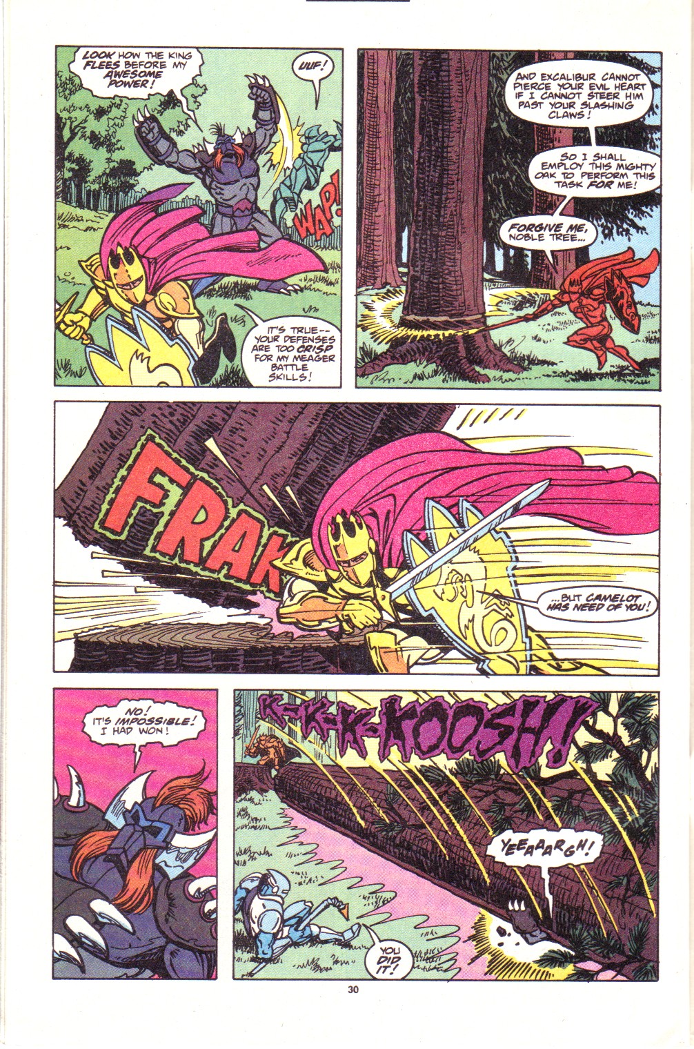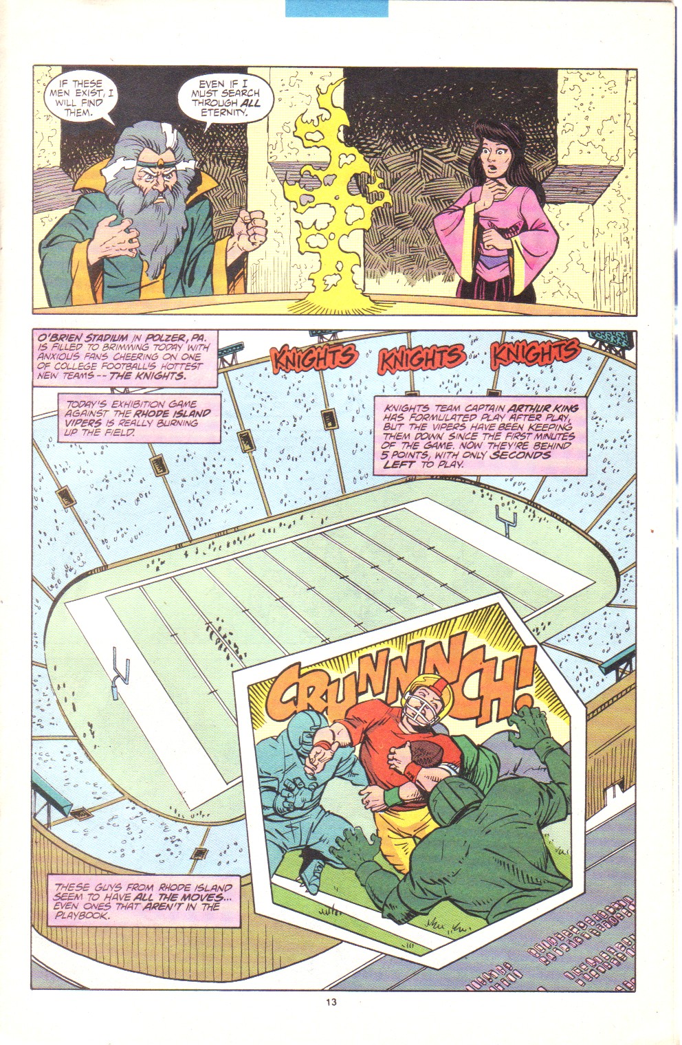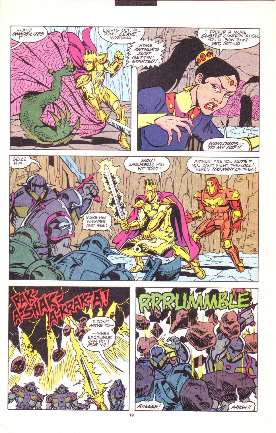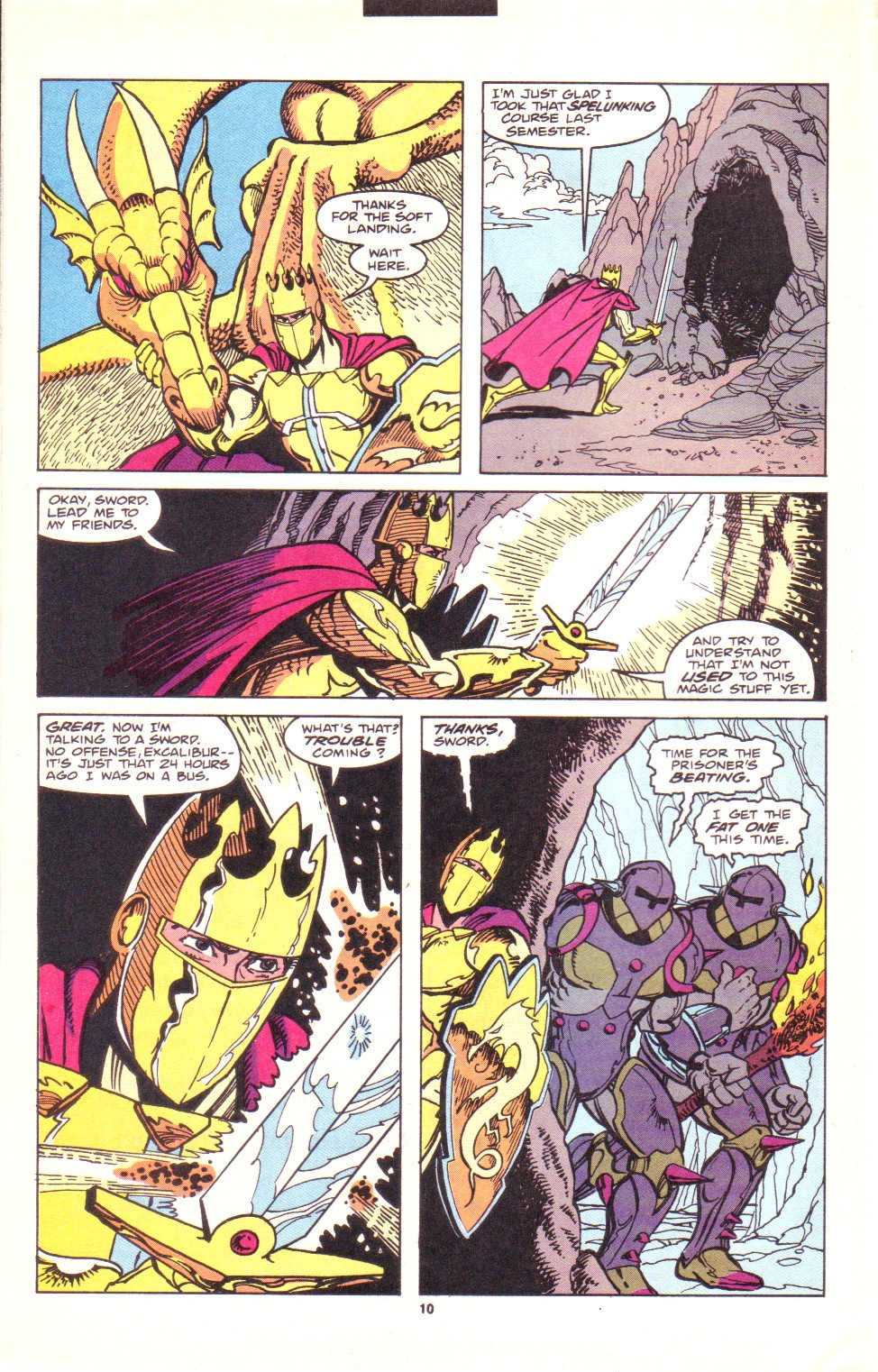 Scans of the complete 3-part Marvel comics series based on the King Arthur & the Knights of Justice cartoon. Basically tells the story of how the football team were transported back in time and became the Knights of Justice and chronicles their first adventure to rescue Queen Guinevere. The reason some page numbers are missing is because I didn't bother to scan any of the ads. None of them were related to Knights of Justice in any way and were generally uninteresting anyway.