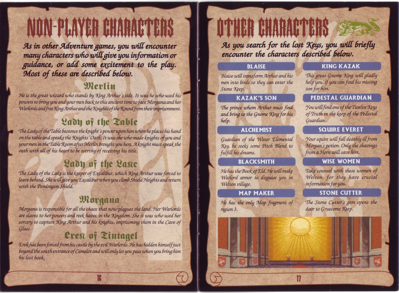 Page 16 (Non-Player Characters) and Page 17 (Other Characters)