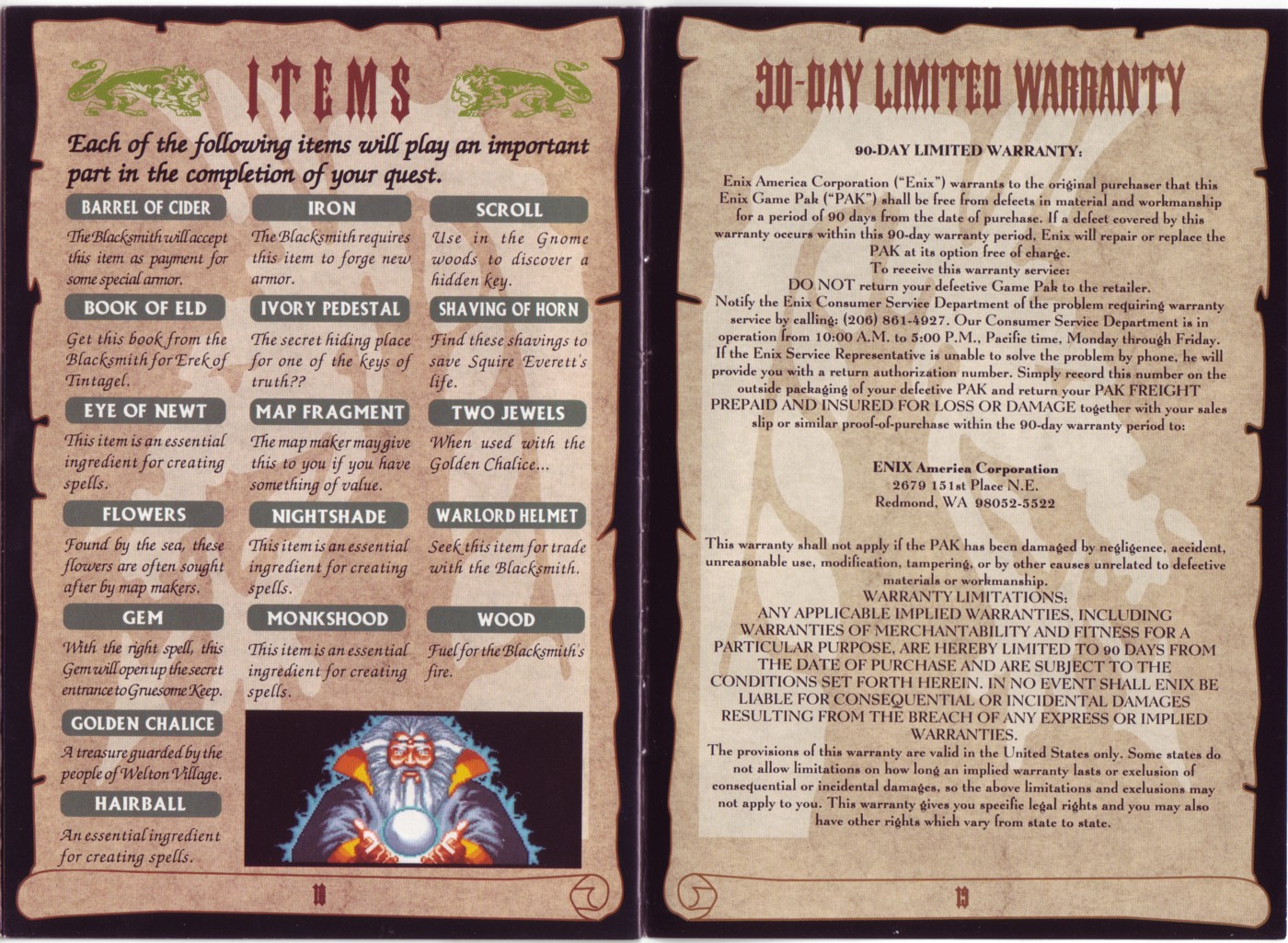 Note #1: The game was actually made by a group called Manley & Associates for Enix of America. It was the first and only game produced for Enix outside of Japan.
