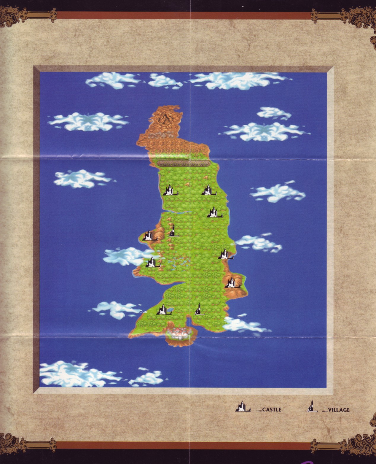 Here are scans of the manual, map, and box that originally came with the game. I included the entire manual except the back cover because it's just a blank page with Enix America's old address and phone number. I wanted to scan the entire poster but it is too large for my scanner and would be too difficult to stitch together with multiple scans. Instead, I just scanned the map parts of it separately because that's the most important part. (The poster art is exactly the same as the front cover of the box anyway.)